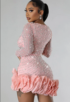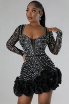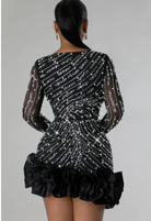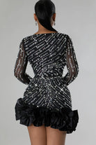 هذه الفستان القصير الضيق مزين بالكريستالات المتلألئة. يتيح ياقة على شكل V عميق وأكمام طويلة مناسبة الحصول على مظهر أنيق. مثالي للسهرات والمناسبات الخاصة.