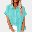 تقدم هذه البلوزة تصميمًا واسعًا مثاليًا للأيام الحارة. يضيف ياقة الكلاسيكية وإغلاق الأزرار لمسة أنيقة. مثالية لمظهر غير رسمي أو مهني.