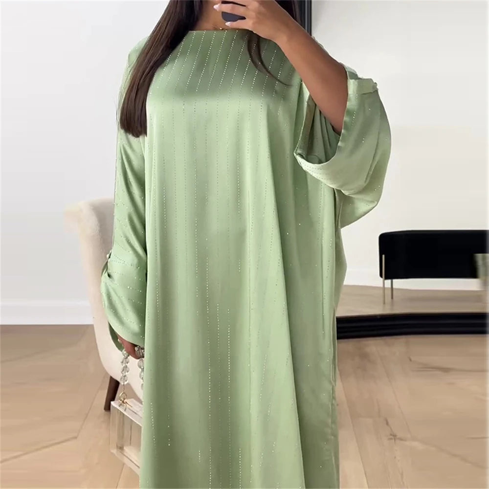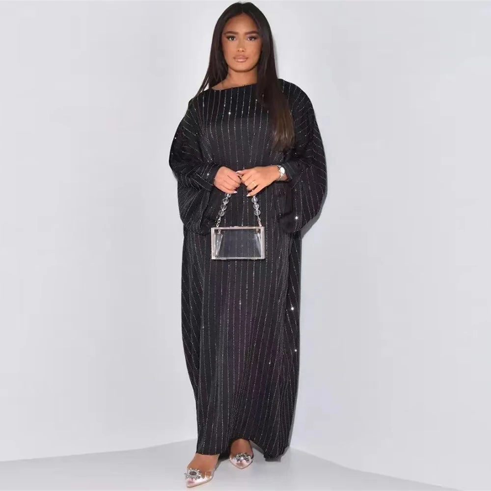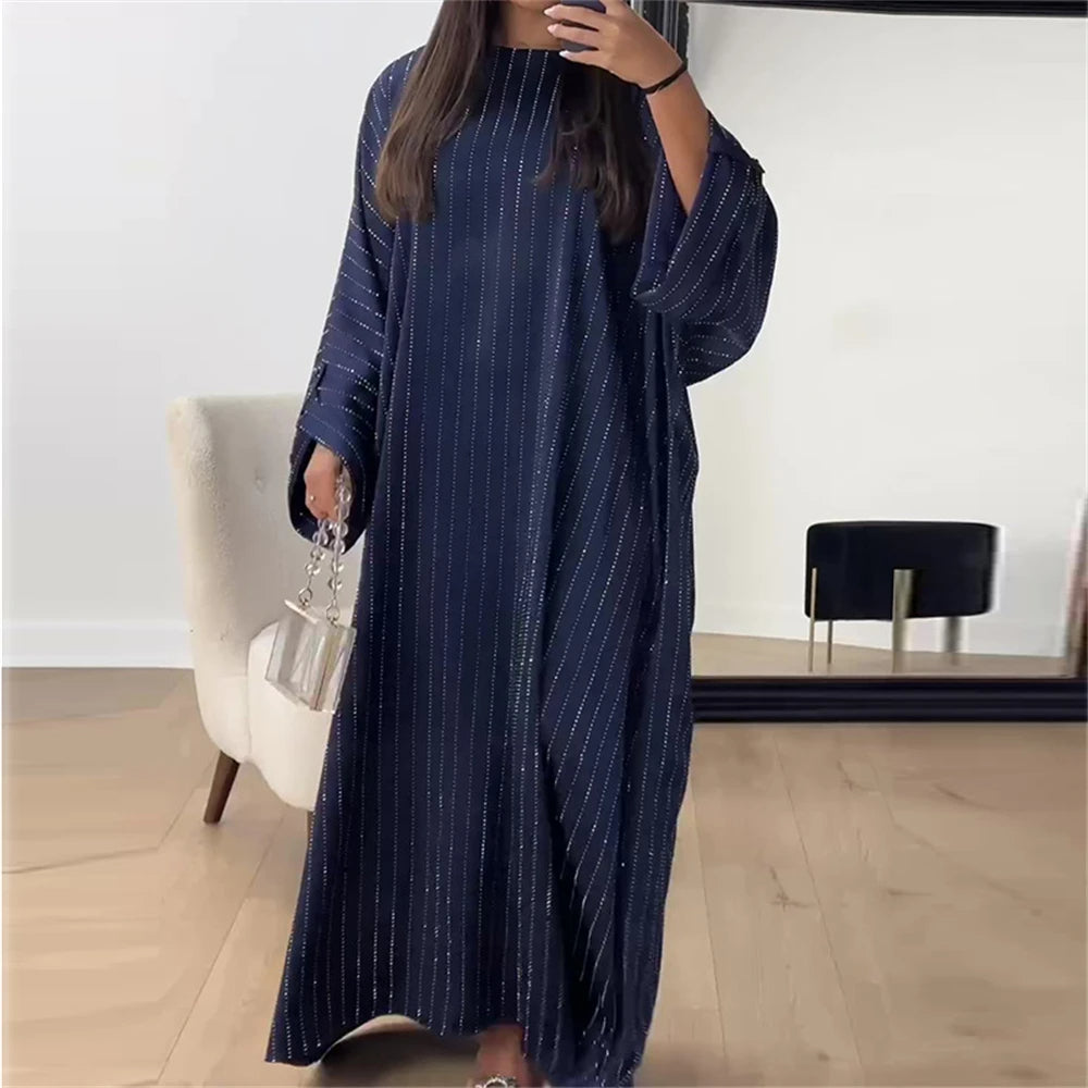 Tato večerní abaya spojuje volný střih s elegantním pruhovaným designem. Její široká silueta zaručuje naprosté pohodlí, zatímco její jemné detaily diskrétně zvýrazňují váš vzhled.