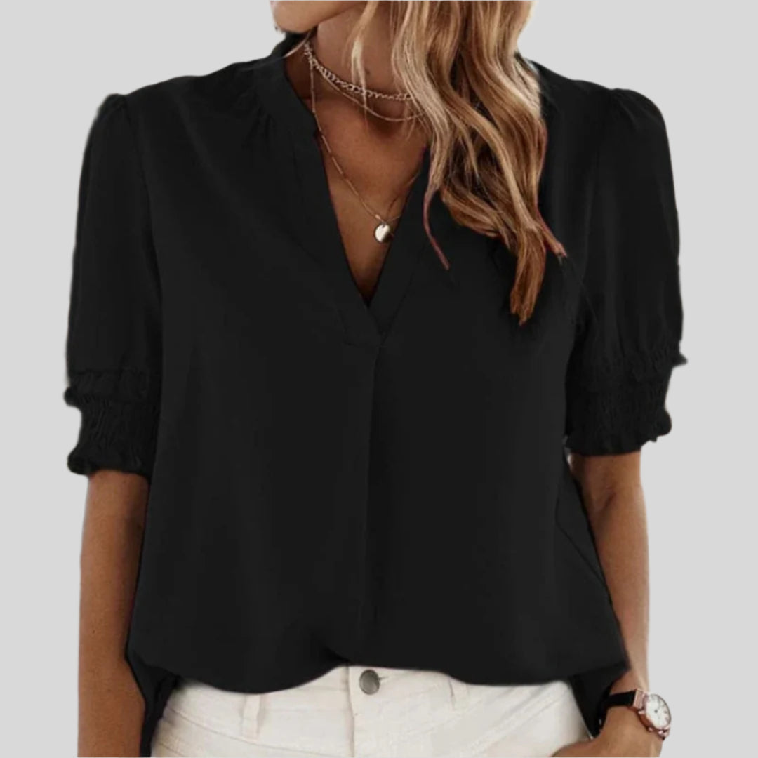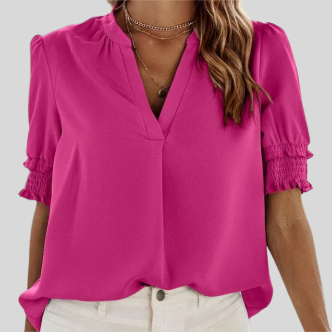 The blouse combines elegance and comfort to enhance your style with refinement. Its gathered sleeves add a feminine touch, while its flattering cut adapts to all silhouettes. Available in several colors and sizes, it suits all your desires.