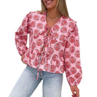 Tässä paidassa on naisellinen siluetti ja viehättävä kukkakuosi. Sen pitkät hihat ja ainutlaatuinen kaulus lisäävät ripauksen eleganssia. Täydellinen rentoihin tilaisuuksiin, se yhdistää tyylin ja mukavuuden.
