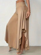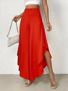 Nämä housut erottuvat virtaavalla ja epäsymmetrisellä leikkauksellaan, joka tuo persoonallisuutta asuusi. Korkea vyötärö korostaa siluettia, kun taas kevyt kangas tarjoaa mukavuutta koko päivän ajan. Täydellinen rentoon mutta tyylikkääseen ilmeeseen, niin kaupungissa kuin lomalla.