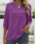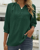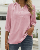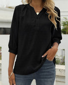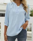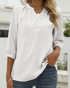 חולצה קלאסית זו משלבת גזרה נצחית עם נגיעה מודרנית. הצווארון המפוצל עם הכפתורים מוסיף סגנון, בעוד שהשרוולים מעט מקומטים מוסיפים נופך נשי. מושלמת למראה מסודר ונוח בכל יום.