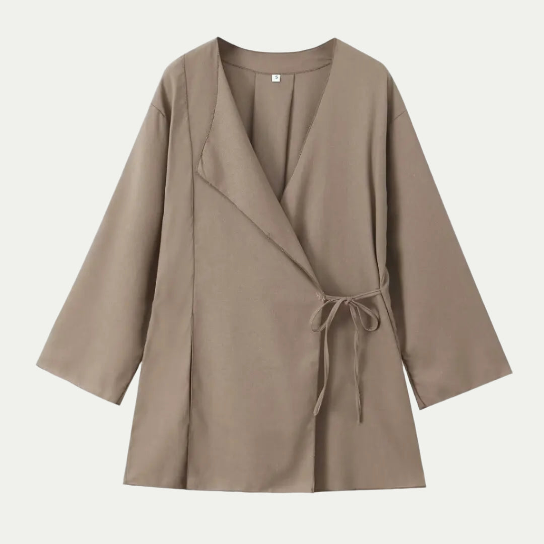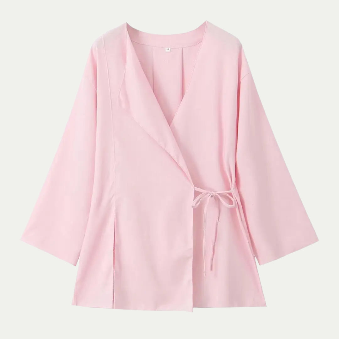 סט זה משלב חולצת קימונו עם שרוולים רחבים ומכנסיים בגובה מותן עם רגליים רחבות למראה זורם ומעודן. קל ונוח, הוא אידיאלי לימים חמים. זמין במגוון צבעים, הוא משלב סגנון קיץ עם חופש תנועה.