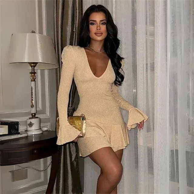 למה לבחור בשמלונת מיני נוצצת עם שרוולים מתרחבים?