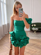 Denne asymmetriske minikjolen har en moderne og feminin silhuett. Dens enkle design passer til ulike anledninger. Laget for å kombinere stil og komfort, fremhever den figuren din.